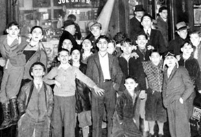 (Photo upper right) Children gather outside store on South 8th Street where Pius Lanzetti was murdered. 1936