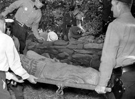 (Photo upper left) Police recover the body of gangster Willie Lanzetti from underbrush in Wynnewood, Pennsylvania. 1939.