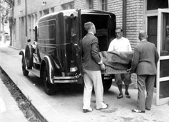 Murdered body of Mickey Duffy removed from the Ambassador Hotel in Atlantic City. 1931