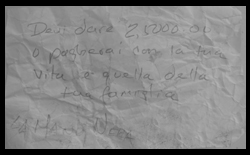 The tenor Enrico Caruso received a Black Hand letter, on which a black hand and dagger were drawn, demanding $2,000. Caruso decided to pay, "and, when this fact became public knowledge, was rewarded for his capitulation with 'a stack of threatening letters a foot high,' including another from the same gang for $15,000."Realizing the extortionists would continue to demand money, he reported the incident to the police who, arranging for Caruso to drop off the money at a prearranged spot, arrested two Italian-American businessmen who retrieved the money.
