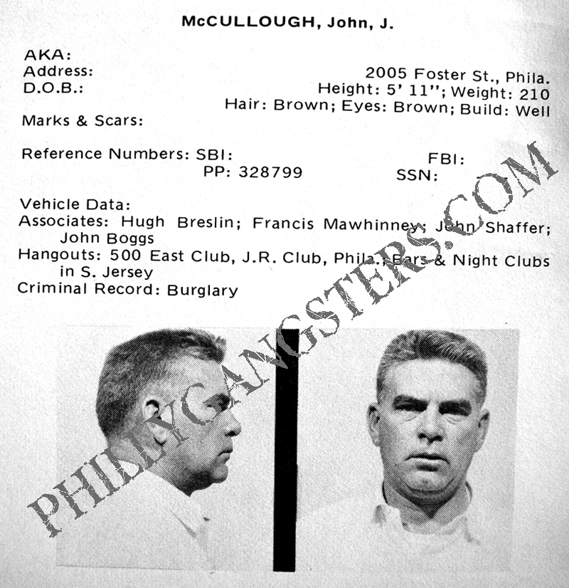 The only problem was a tough as nails Philadelphia Irishman, and K&A gang associate had his sights on the AC casino construction business as well. John McCullough a beloved union leader of Roofers local 30 B was planning his entrance to the Atlantic City enterprise. Immediately he began union organizing. The Bartenders, housekeepers, restaurant workers and security guards were being called to unionize. But Little Nicky Scarfo wasn't hearing any of that stuff. McCullough along with a loyal union following, also had very close ties to the Irish K&A gang. McCullough wasn't unfamiliar with violence and gangster ways, he was an old pro.